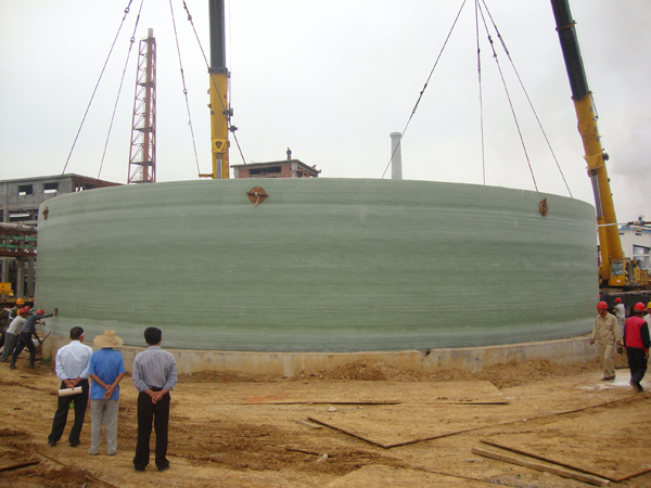 2010年3月,中復連眾成功競標湖北宜昌2臺5000立方、1臺3000立方的玻璃鋼鹽酸貯罐項目。該項目存在罐體直徑大、罐頂易變形、罐身高、罐內液體壓力大的難點(diǎn),并且內部為高腐蝕性鹽酸介質(zhì),制作難度空前,在國內甚至全球并無(wú)案例可參考。為確保該項目的成功實(shí)施,業(yè)主選擇處于行業(yè)領(lǐng)先地位的中復連眾來(lái)承擔此工程。中復連眾充分發(fā)揮卓越的自主創(chuàng )新能力,完成了多項技術(shù)攻關(guān),通過(guò)改進(jìn)纏繞設備、使用新型材料、內部采用多點(diǎn)支撐、優(yōu)化施工工藝等方法,克服施工難點(diǎn),成功完成儲罐制作。從工程設計到工程竣工交付僅僅用了6個(gè)月時(shí)間,于2011年2月交付業(yè)主使用。